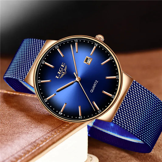 2023 LIGE Mens Watches Top Brand Luxury Gold Watch Sports Casual Mesh Stainless Steel Waterproof Watch for Men Relogio Masculino