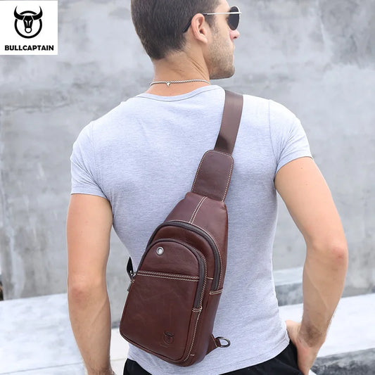 BULLCAPTAIN Crazy Horse Leather Men's Small Chest Shoulder Belt Bag